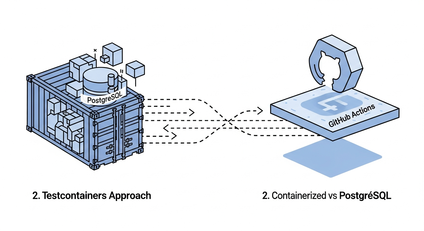 Zonky pays none of this. It downloads its tarball once, extracts it under java.io.tmpdir, and starts the cluster as a child process of the JVM. On the same cold runner, total time-to-first-query is typically 2–4 seconds. That difference, across hundreds of CI jobs per day, is the entire reason this comparison matters.